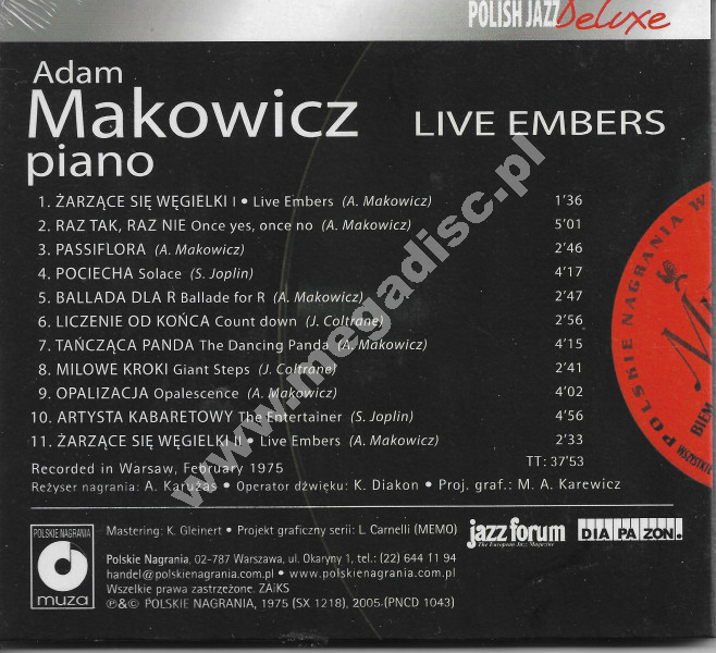 ADAM MAKOWICZ - Live Embers - Polskie Nagrania - UNIKALNY CD