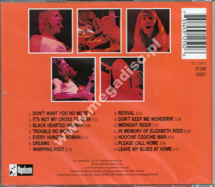 Kompilacja obejmująca dwa pierwsze albumy grupy (1969–1970, dokumentujące jej wczesny okres działalności. Materiał prezentuje charakterystyczne połączenie bluesa, rocka i elementów jazzu, z naciskiem na rozbudowane partie instrumentalne oraz gitarowe dialogi. Brzmienie opiera się na współgraniu dwóch gitar prowadzących, organów Hammonda oraz rozbudowanej sekcji rytmicznej z podwójną perkusją. Istotnym elementem są także improwizowane fragmenty, które stały się jednym z wyróżników stylu zespołu. Reedycja z 1996 roku. Tylko jedna sztuka! Nowa, zafoliowana.