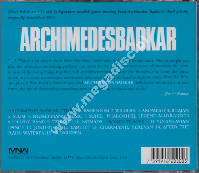 „Tre” to trzecia płyta Archimedes Badkar z 1977 roku, na której zespół rozwija swoje charakterystyczne połączenie jazzu, rocka i wpływów pozaeuropejskich. Utwory opierają się na powtarzalnych motywach rytmicznych i melodycznych, które są stopniowo rozwijane przez kolejne instrumenty. Wyraźnie słychać rozbudowaną sekcję perkusyjną oraz instrumentarium nawiązujące do muzyki Bliskiego Wschodu i Azji – co nadaje całości pulsujący, miejscami transowy charakter. Partie dęte i klawiszowe prowadzą narrację, często przechodząc od unisonów do swobodniejszych fragmentów improwizowanych. Reedycja z 2003 roku. TYLKO JEDNA SZTUKA! Nowa, zafoliowana.