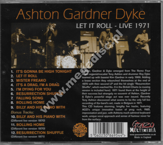 ASHTON GARDNER & DYKE - Let It Roll - Live 1971 - Gonzo Multimedia - UNIKALNY CD