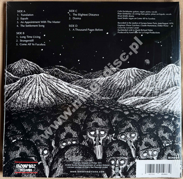 Atrakcyjnie wydana (w rozkładanej okładce) i świetnie brzmiąca reedycja nagranego w 1970 roku (ale wydany dopiero w 1973 we Francji), debiutanckiego albumu brytyjskiej, kompletnie zapomnianej formacji. "Lemmings" to kapitalny, dość ciężki progresywny rock z wysokiej półki, z wyraźnymi psychodelicznymi naleciałościami - momentami bardzo przypominający dokonania T2. Pierwszy LP zawiera w całości materiał z francuskiego winylu, a na drugim LP zamieszczono trzy nagrania z tej samej sesji, wydane dopiero w 1977 roku na brytyjskiej EP-ce. MUS! NOWA, ZAFOLIOWANA.