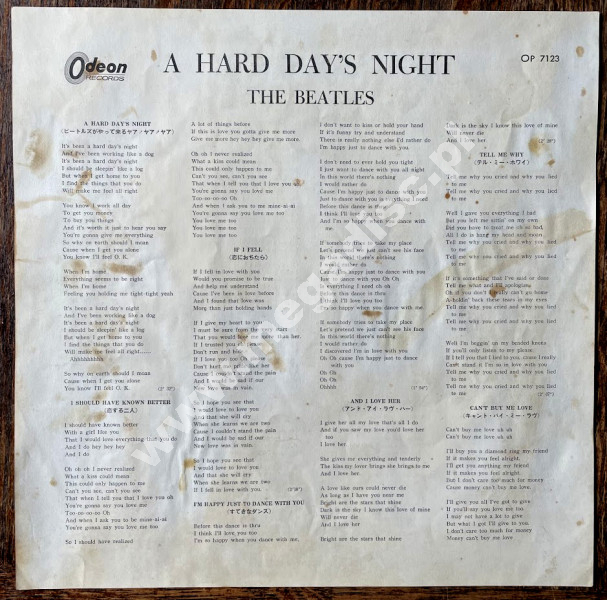 BEATLES - A Hard Day's Night - JAPAN Odeon RED VINYL 1966 (with 1964 1st Press COVER) STEREO Press - NEAR MINT VINTAGE VINYL