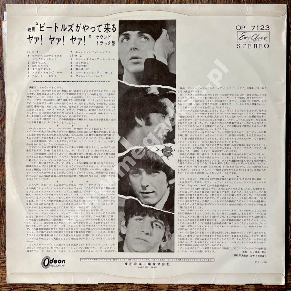 ANALOGOWE BRZMIENIE! Bardzo rzadkie, drugie japońskie wydanie (z 1966 roku) klasycznego, trzeciego albumu The Beatles - w UNIKALNEJ DLA JAPONII, ALTERNATYWNEJ OKŁADCE, która z kolei pochodzi z pierwszego wydanie, z 1964!!! ALBUM TEN WYDANY JEST NA CIEMNO-CZERWONYM WINYLU - tak, jak wydawało się w Japonii większość płyt do 1969-1970 roku. W komplecie wkładka z tekstami. Okładka: EXCELLENT+ / Płyta: MINT-