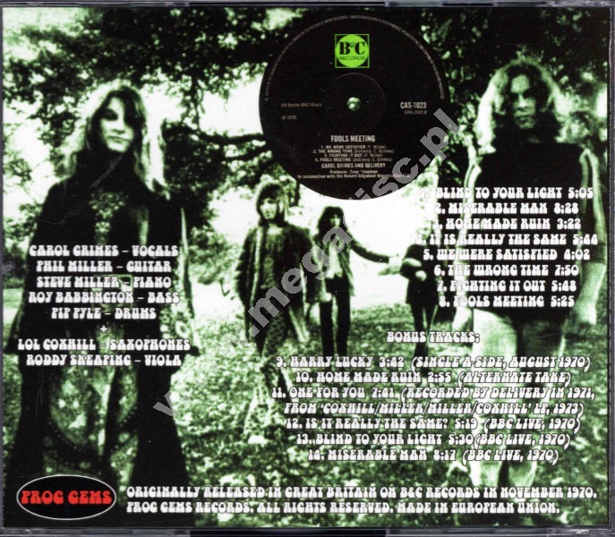 CAROL GRIMES AND DELIVERY - Fools Meeting +7 - EU Prog Gems Expanded Limited Edition - POSŁUCHAJ - VERY RARE