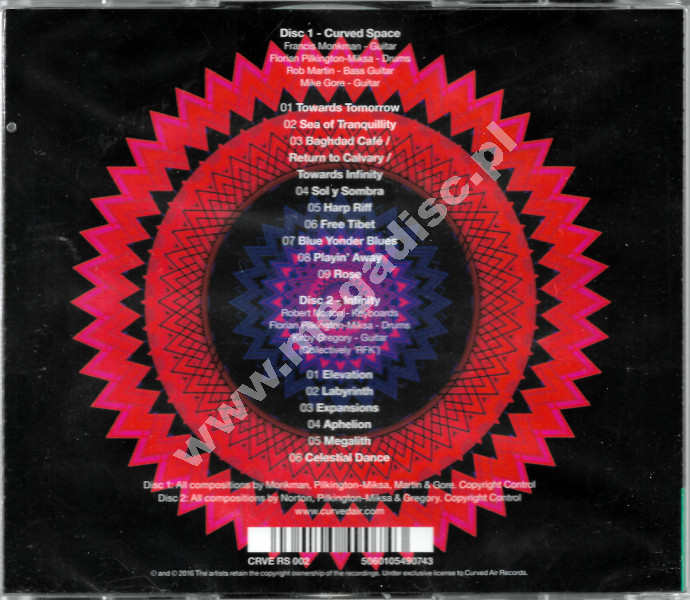 Kompilacyjny album, gdzie już sam podział na dwa dyski – „Curved Space” i „Infinity” – sugeruje konceptualne rozróżnienie między bardziej „ziemskim” prog rockiem a swobodniejszym, niemal kosmicznym eksperymentem. Pierwszy dysk jest bliższy tradycji brytyjskiego rocka progresywnego lat 70. Drugi dysk („Infinity”) to już materiał zdecydowanie bardziej otwarty – momentami zahaczający o ambient, jazzową improwizację czy wręcz proto-elektronikę. TYLKO JEDNA SZTUKA! Nowa, zafoliowana.