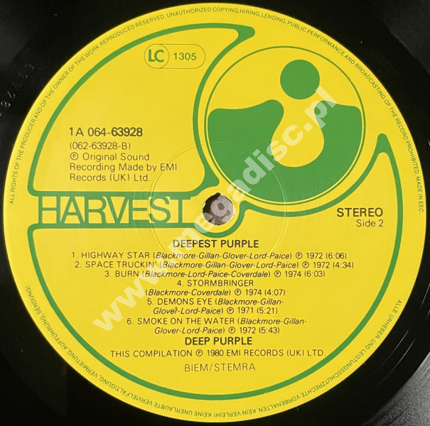 DEEP PURPLE - Deepest Purple - The Very Best Of Deep Purple - NL Harvest 1980 1st Press - NEAR MINT VINTAGE VINYL