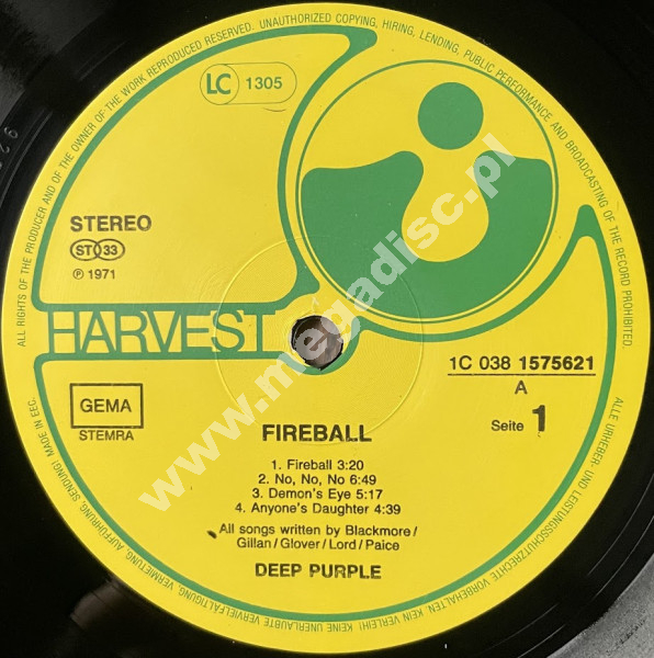 DEEP PURPLE - Fireball - GERMAN Harvest/Fame 1984 Press - EXCELLENT PLUS VINTAGE VINYL