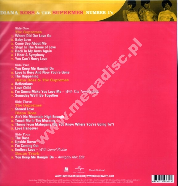 Kompilacyjny album zawierający utwory które dotarły do pierwszego miejsca list przebojów, zarówno nagrane z The Supremes, jak i solowe Diany Ross. Dwupłytowa, audiofilska edycja na 180-gramowym winylu. Doskonałe tłoczenie.