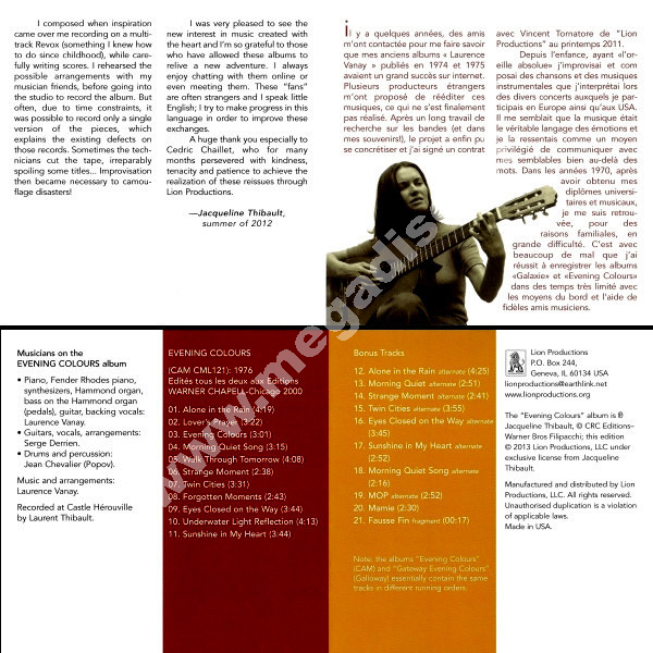 Cudowny instrumentalny album z 1975 roku, nagrany przez grupę Gate Way, ale często uważany za solowe dzieło Laurence Vanay. Zremasterowane wydanie z 2013, rozszerzone o dziesięć utworów. Limitowane do 500 egzemplarzy, z 24-stronicową książeczką. MUS! (MU)