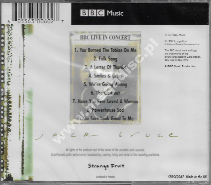JACK BRUCE – BBC Live in Concert - UK Press - UNIKALNY CD