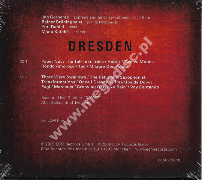 Jan Garbarek to norweski saksofonista, jeden z najważniejszych przedstawicieli tzw. „skandynawskiej szkoły jazzu”, znany przede wszystkim z charakterystycznego, „chłodnego” brzmienia saksofonu – czystego, przestrzennego, często prowadzonego długimi, śpiewnymi frazami. Od lat związany z wytwórnią ECM, gdzie współtworzył jej rozpoznawalną estetykę: oszczędną, nastrojową, mocno opartą na brzmieniu i przestrzeni. Dwupłytowe nagranie koncertu z Drezna z 2007 roku. Edycja ECM 2009. Tylko jedna sztuka! Nowa, zafoliowana.