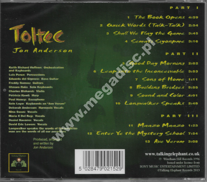 JON ANDERSON - Toltec - Talking Elephant Records - UNIKALNY CD