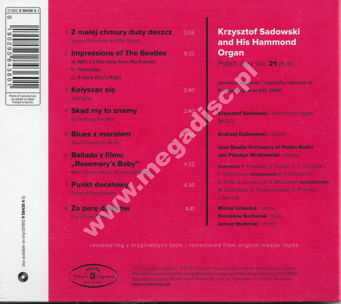 KRZYSZTOF SADOWSKI - And His Hammond Organ -Polskie Nagrania - UNIKALNY CD