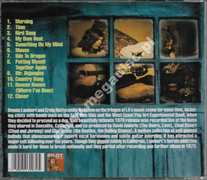 Pochodzący z 1970 roku i wydany wówczas przez A&M Records, jedyny album folk-rockowego duetu z Kalifornii. Producentami płyty byli David Anderle (Doors, Love), Chad Stuart (Chad And Jeremy) oraz Glyn Johns (Beatles, Rolling Stones). Od strony muzycznej jest to bardzo przyjemny, utrzymany w nieco sennym nastroju, delikatny folk na dwie akustyczne gitary i dwa głosy. Reedycja z 2015 roku. Tylko jedna sztuka! Nowa, zafoliowana.