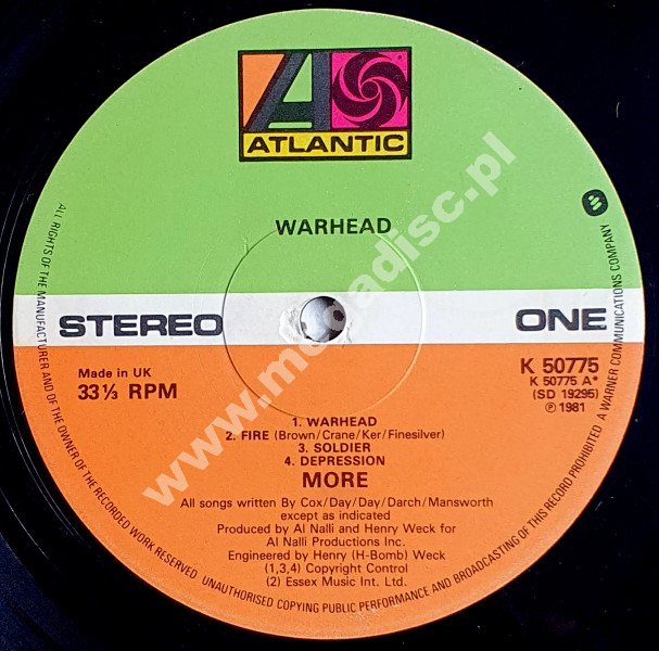 MORE - Warhead - UK Atlantic 1981 1st Press - NEAR MINT VINTAGE VINYL