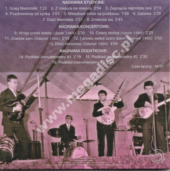 Archiwalne nagrania z lat 1964–1966 jednego z wczesnych polskich zespołów bigbitowych działających w połowie lat 60. Na płycie znalazły się zarówno nagrania studyjne, jak i koncertowe z Opola i Gdańska. Materiał dokumentuje początki polskiego rock and rolla i bigbitu. Wydanie z 2017 roku, tylko jedna sztuka! Nowa, zafoliowana.