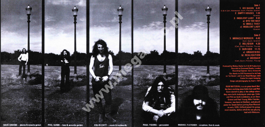 Nowa, LIMITOWANA edycja z utworem dodatkowym. Wydany oryginalnie w 1971 roku przez RCA Neon, drugi album w karierze Raw Material to jeden z najwspanialszych (mało znanych) progresywnych tytułów nagranych w Wielkiej Brytanii! Długie, kompleksowe kompozycje, wpadające z miejsca 'w ucho' melodie, przejrzyste aranżacje i pełne, rockowe brzmienie. Gitary, saksofon, flet, melotron, organy... Całość przypominała nagrania bardzo wczesnych Genesis i Van Der Graaf Generator - ze szczyptą Jethro Tull i King Crimson. To jest absolutnie OBLIGATORYJNA pozycja dla każdego miłośnika progresywnych brzmień z przełomu lat 60-tych i 70-tych! Dodatkowo wydany wyłącznie na singlu, nigdy wcześniej nie wznowiony cover Free - 'Ride On Pony' z 1971! MUS! (JL)