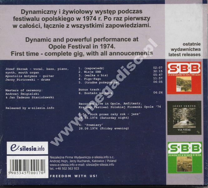 SBB - Live in Opole 1974 – Rock przez cały rok - Śląska Witryna Muzyczna - UNIKALNY CD