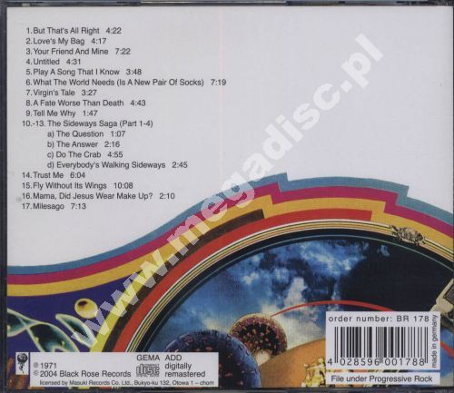 Wydany pod koniec 1971 roku, drugi i nieco bardziej stonowany album świetnego australijskiego zespołu. Ten materiał na winylu wydany został przez Harvest jako podwójny LP - tutaj na pojedynczym CD. Bardzo zróżnicowany (autentycznie progresywny) album będący połączeniem typowego organowo-gitarowego rocka z elementami heavy oraz akustycznymi brzmieniami. Polecam! (JL)