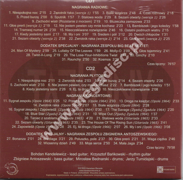 Płyty zawierają archiwalne nagrania jednego z ważniejszych zespołów polskiego big-beatu lat 60. Materiał pochodzi głównie z archiwów radiowych oraz nagrań koncertowych i pokazuje instrumentalną stronę grupy inspirowanej surf rockiem i wczesnym rock’n’rollem. Wydanie rozszerzono o rzadkie nagrania zespołu Big Beat Sextet oraz grupy Zbigniewa Antoszewskiego. Tylko jedna sztuka! Nowa, zafoliowana. Digipack.