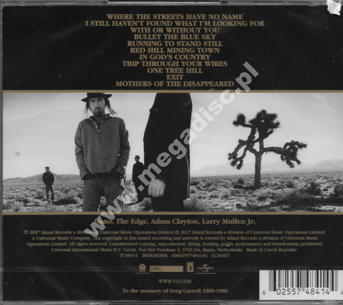 Piąty album studyjny, z takimi przebojami jak "Where The Streets Have No Name", "I Still Haven't Found What I'm Looking For", "With Or Without You" czy "Bullet The Blue Sky". Nowa edycja w tradycyjnym, plastikowym pudełku.