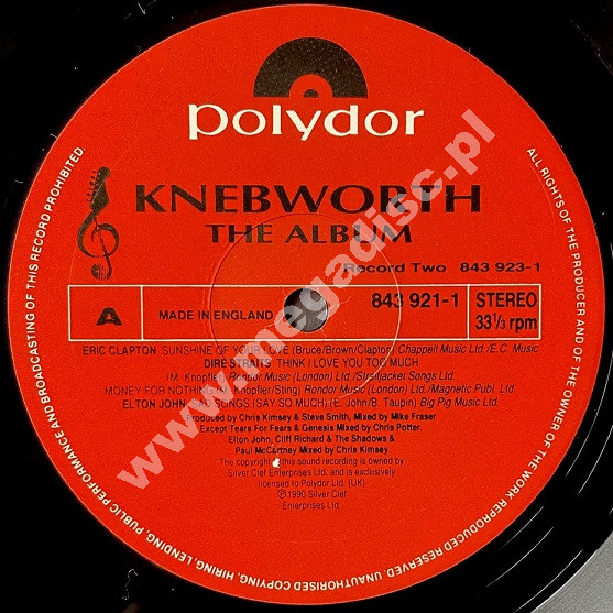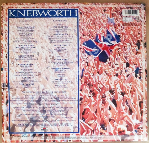 ANALOGOWE BRZMIENIE! Podwójny winyl zawierający legendarny koncert z Knebworth, z 30 czerwca 1990 roku, z udziałem m.in. Genesis, Dire Straits, Pink Floyd, Roberta Planta i Paula McCartneya... Dwie oryginalne koperty w komplecie. Stan praktycznie idealny! Okładka: MINT- / Płyty: MINT-/MINT-