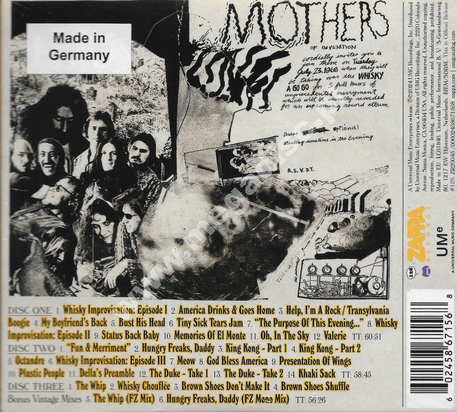 Whisky a Go Go 1968 — nagranie na żywo The Mothers of Invention z Frank Zappa — pochodzi z koncertu, który odbył się 23 lipca 1968. Trzypłytowa edycja digipack. Kolejny jazz-rockowy klasyk!